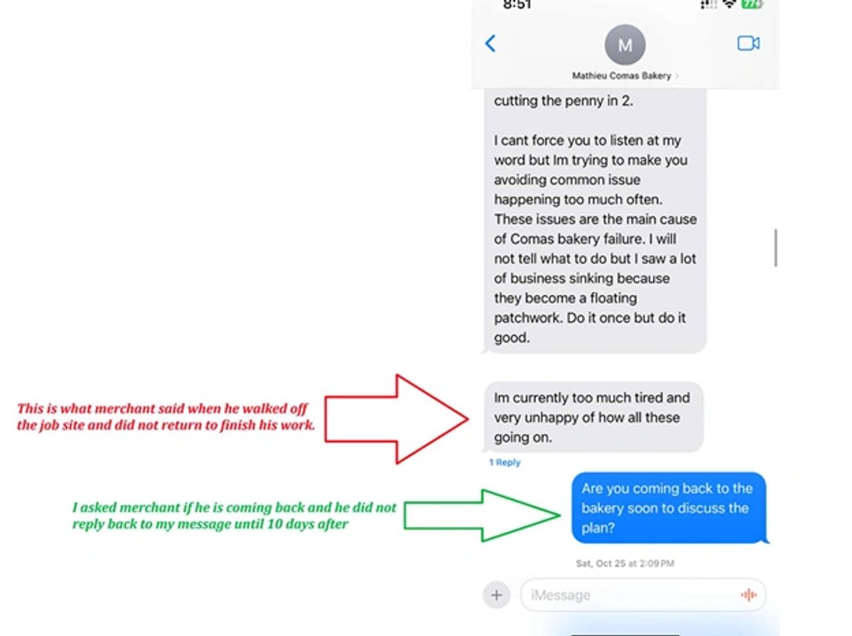 When we sought a refund for the work he abandoned and damaged, he escalated the fraud.